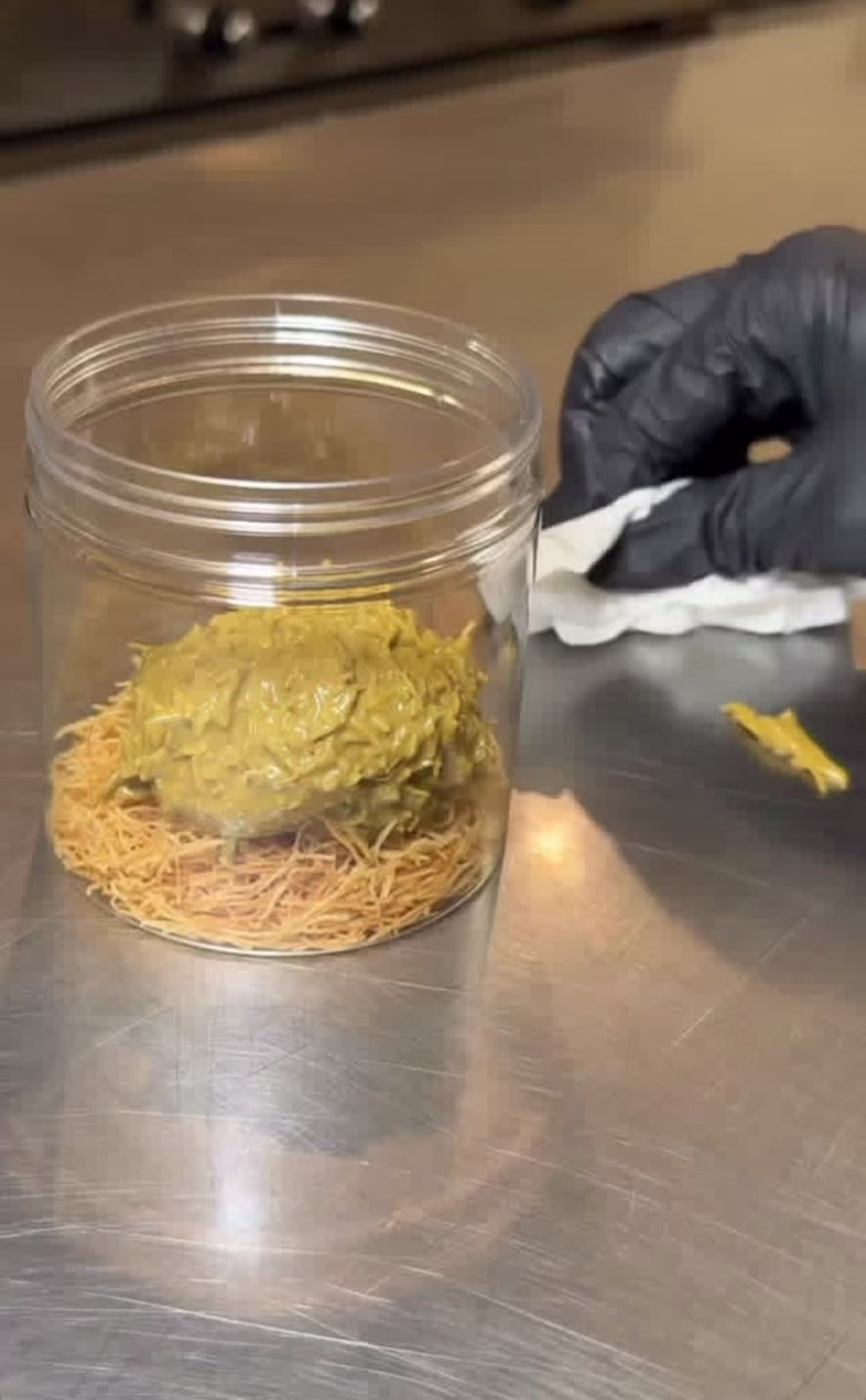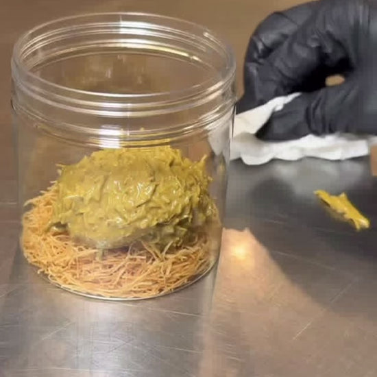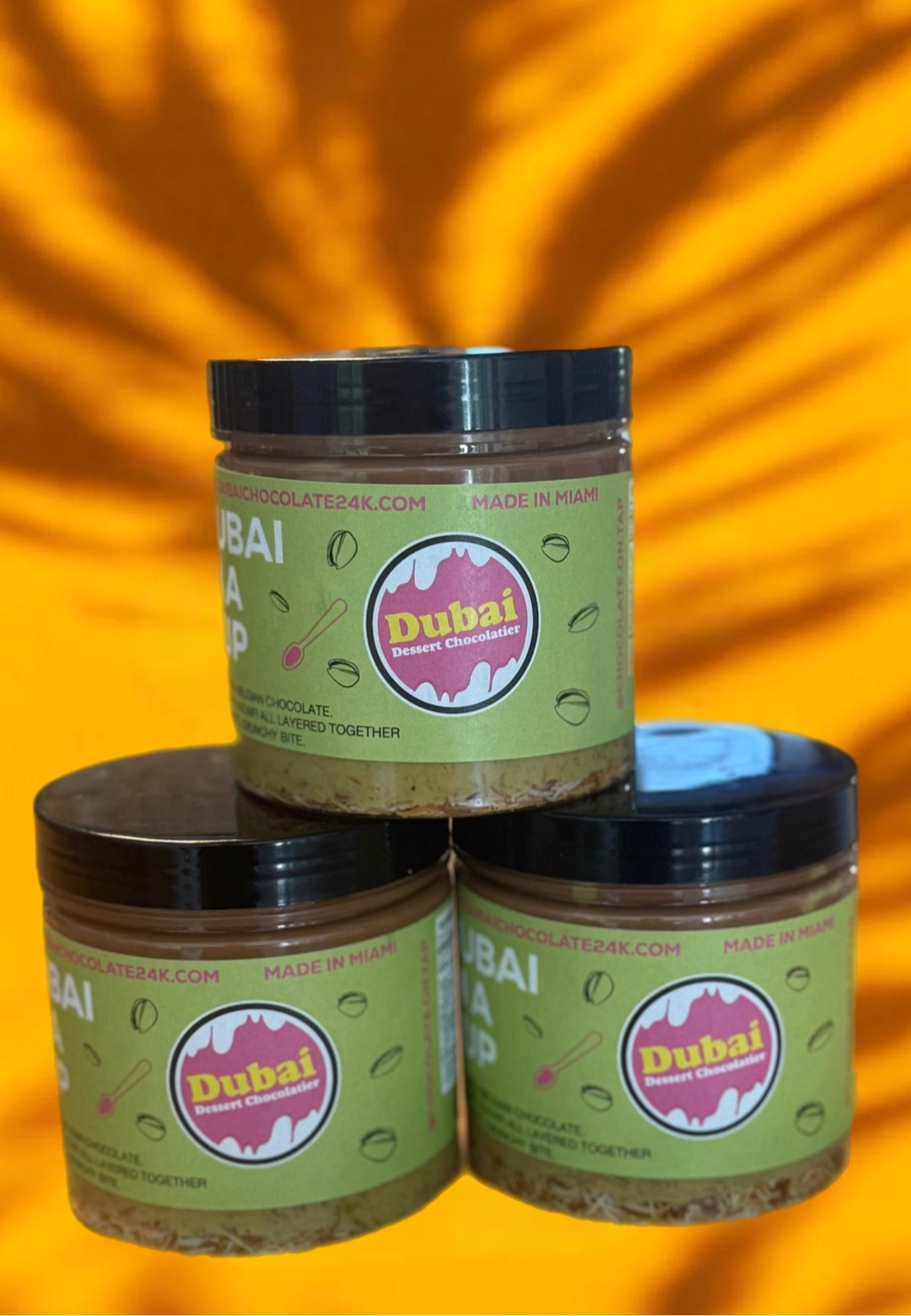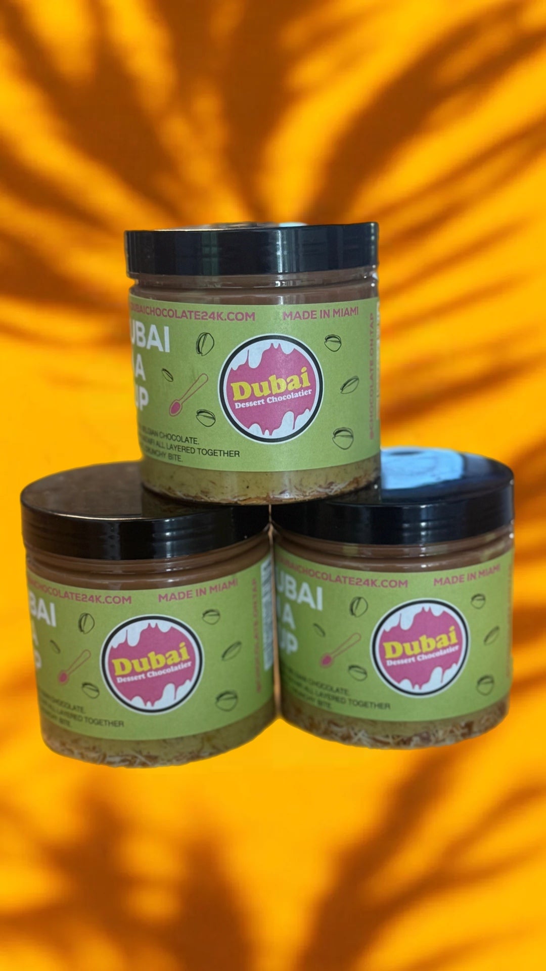 Dubai in a CUP! A deconstructed dessert- that’s every Dubai chocolate lovers dream come true. This cup contains layers of crispy knafeh, rich Belgian chocolate and fresh pistachio filling for the perfect crunch in every bite. Almost a pound of deliciousness that can be eaten over time- It’s the weight of more than 2 XL Dubai bars. Store in a cool dry place and enjoy.